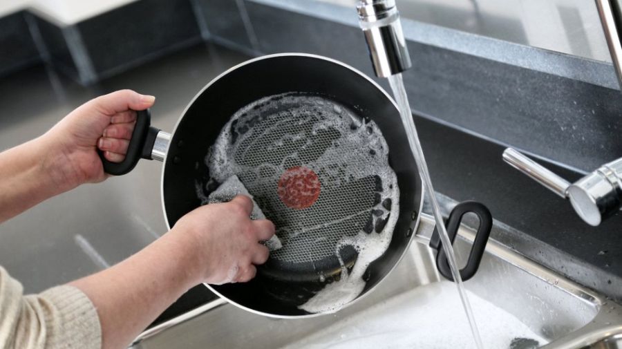 Як і чим мити посуд з тефлоновим напиленням Користуйтеся губками і м'якими миючими засобами (без наявності в складі кислот, лугів, хлору). Якщо їжа все ж пригоріла, залийте ємність теплою водою, залиште її на деякий час для відмокання, а потім видаліть бруд за допомогою губки.