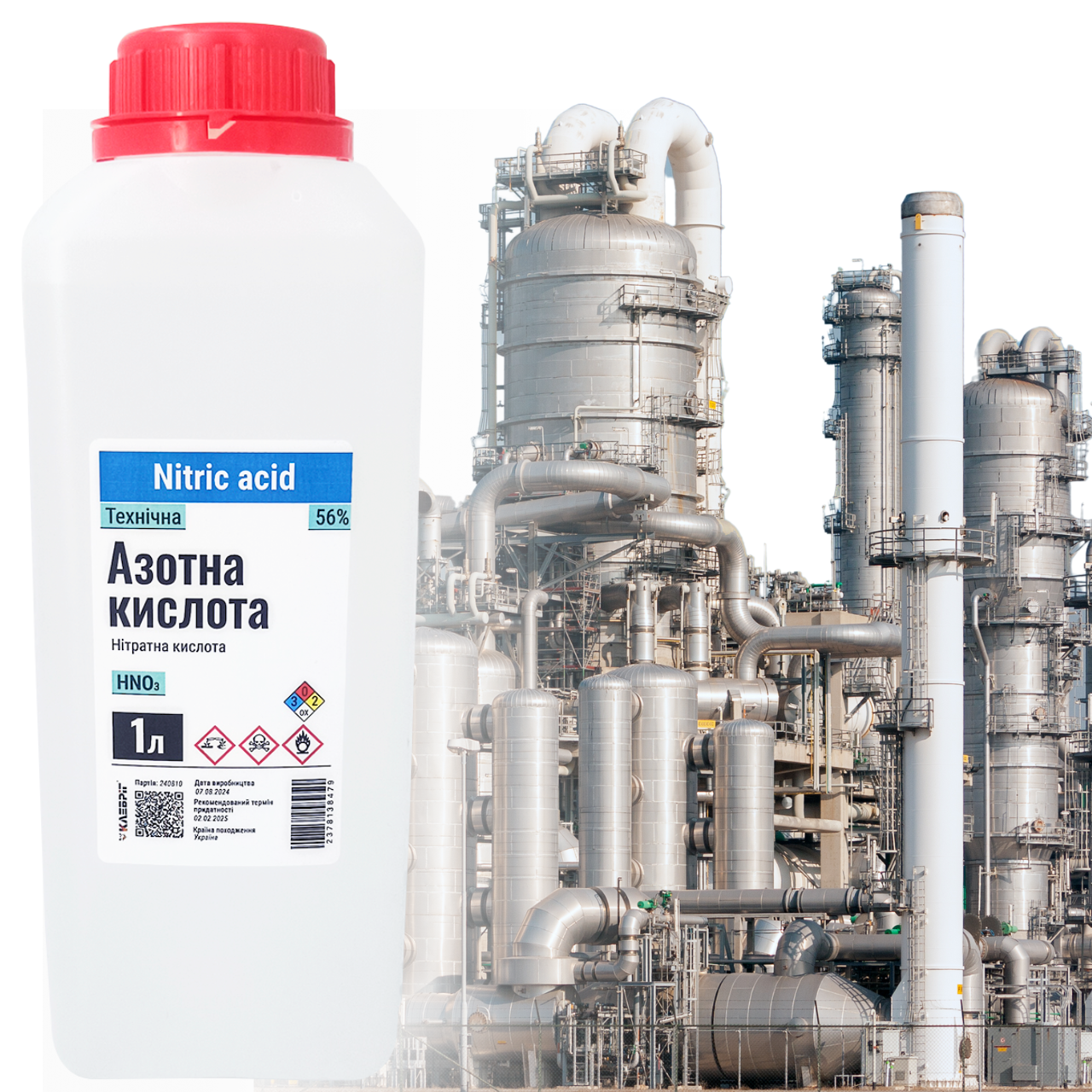 Добувають азотну кислоту каталітичним окисленням аміаку киснем повітря. Азотну кислоту використовують у виробництві добрив, вибухових речовин, барвників, лаків, у металургії кольорових металів, у хімічних лабораторіях тощо.