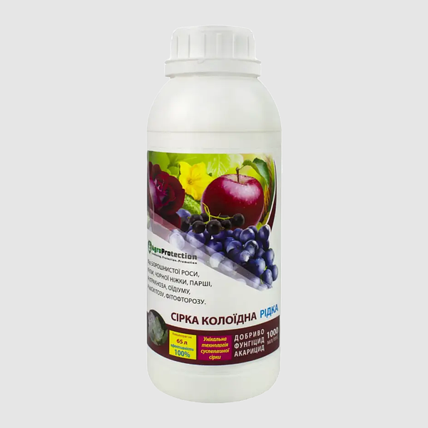 Колоїдна сірка – це високоефективний фунгіцид, який широко застосовується для боротьби з такими захворюваннями, як борошниста роса, парша, антракноз, оїдіум та фітофтороз на різноманітних плодових, овочевих та квіткових культурах.