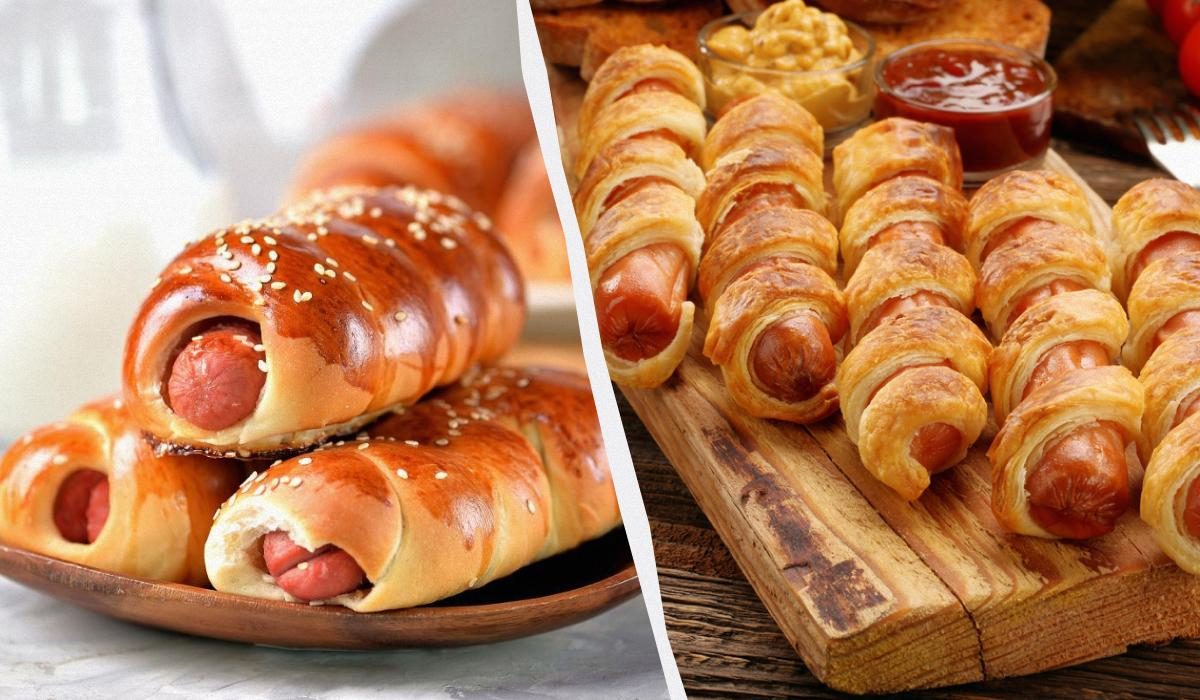 Розчинити дріжджі з цукром у теплому молоці, дати постояти 10 хвилин. Додати борошно, сіль та рослинне масло, замісити тісто і дати йому підійти протягом 1 години. Тісто розділити на 8 рівних частин, кожну розкачати, обернути навколо сосиски. Викласти сосиски на деко, застелене пергаментним папером.