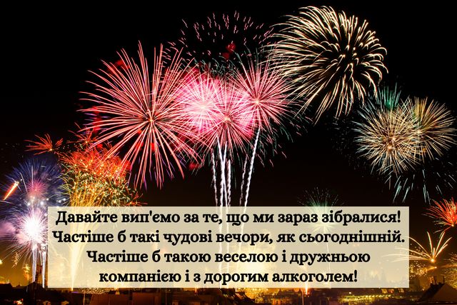 Найкращі тости на Новий рік 2025 для корпоративу та колег. Тост про успіхи й підтримку. Дорогі колеги, пропоную підняти келихи за наш колектив!
