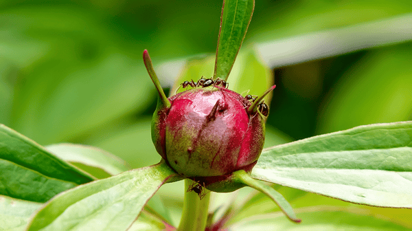 Щоб відвадити мурах від квітника з півоніями, візьміть 2-літрову ємність, залийте її гарячою водою, додайте 2 головки часнику, який попередньо потрібно подрібнити у блендері або м'ясорубці. Цю суміш потрібно настоювати одну добу, потім процідити, залити до пульверизатора і використовувати для обприскування кущів.
