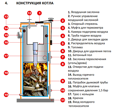 Щоб забезпечити такий же час горіння як у вугільного котла дров’яна конструкція обладнується камерою згоряння в 4 рази більшого розміру. Товщин …