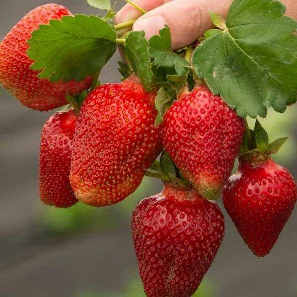 Плоди полуниці Азія: ягоди мають конічну форму, яскраво-червоне забарвлення, маса ягід становить 30-40 г. Морозостійкість полуниці Азія: сорт стійкий до морозів завдяки добре розвиненій кореневій системі. Посухостійкість полуниці Азія: сорт стійкий до посухи, завдяки глибокій кореневій системі.