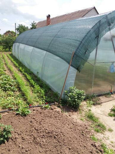 Рекомендується використовувати поліетиленову матерію із щільністю 50%-60%. Це може бути червона сітка, що затіняє для помідорів, сітка, що затіняє для огірків та інших культур. Крім стимуляції зростання, запобігатиме атакам комах.